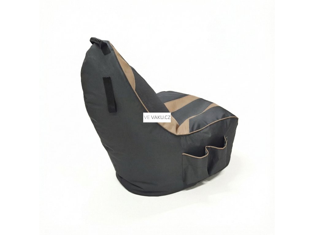 Gamingové sedací křeslo / vak béžový – ergonomické, kapsy na ovladač + pití