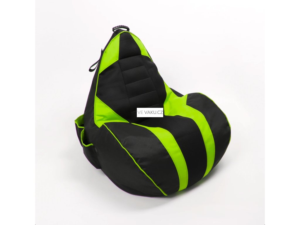 Stylový a funkční sedací vak ve tvaru herního křesla byl navržen pro všechny, kteří tráví dlouhé hodiny u počítače nebo konzole. Ergonomický střih inspirovaný závodními sedačkami podporuje zdravé sezení, zatímco praktické kapsy na ovladač a nápoj zvyšují komfort při hraní.
