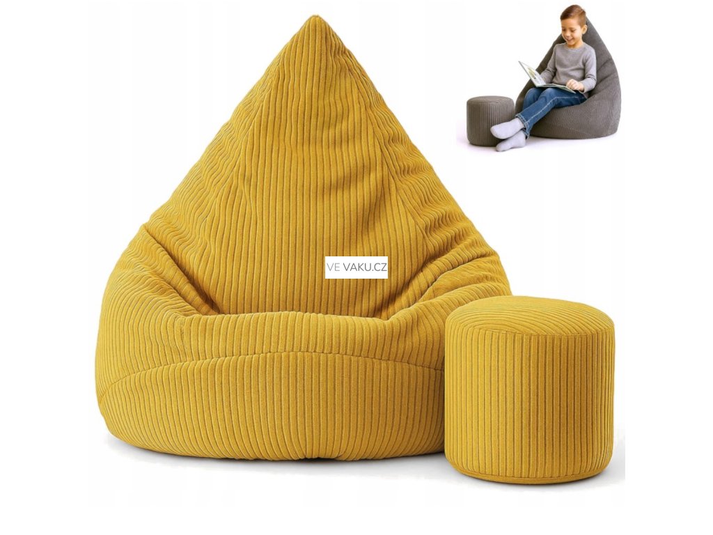 Manšestrový sedací vak pro děti ŽLUTÝ + PODNOŽKA ZDARMA