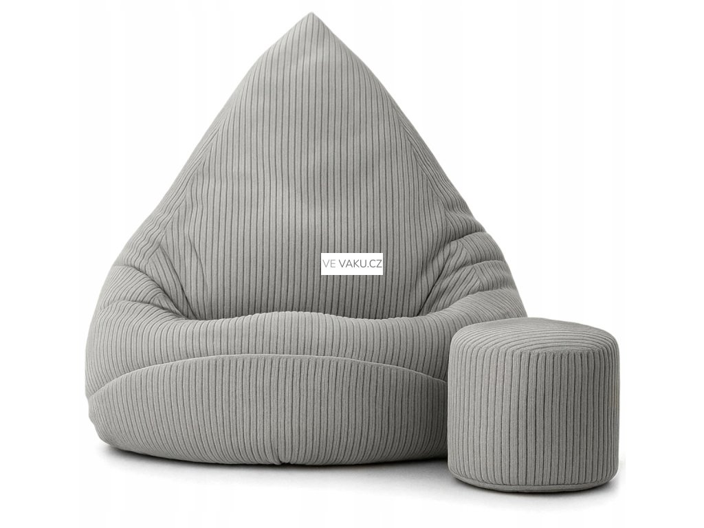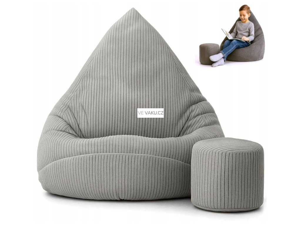 Manšestrový sedací vak pro děti ŠEDÝ + PODNOŽKA ZDARMA