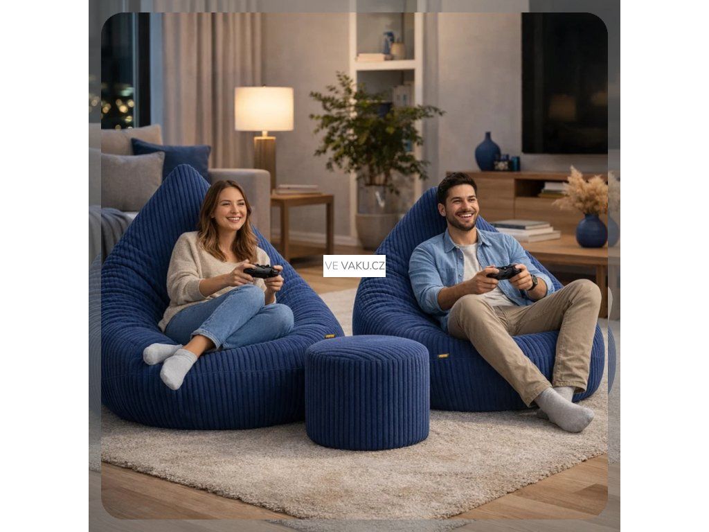 Mega pohodlný manšestrový sedací vak s podnožkou ZDARMA. Vyrobený z tkaniny PREMIUM, ručně šitý s důrazem na kvalitu. Stylový, měkký a odolný – ideální do domu, školy i na zahradu!