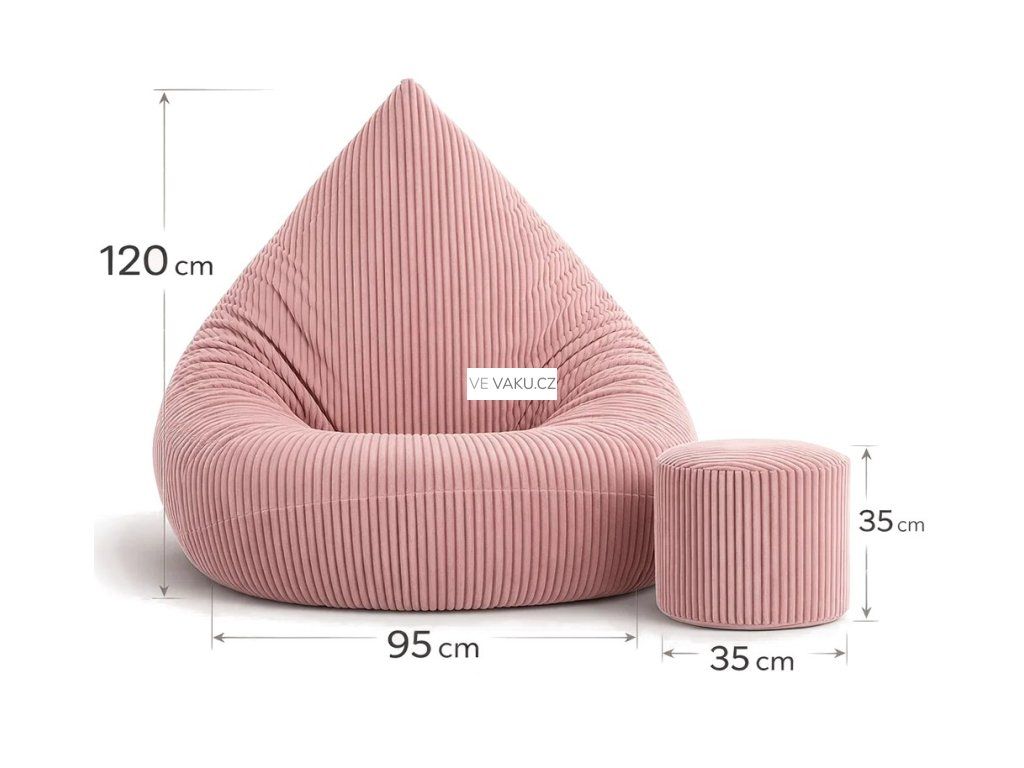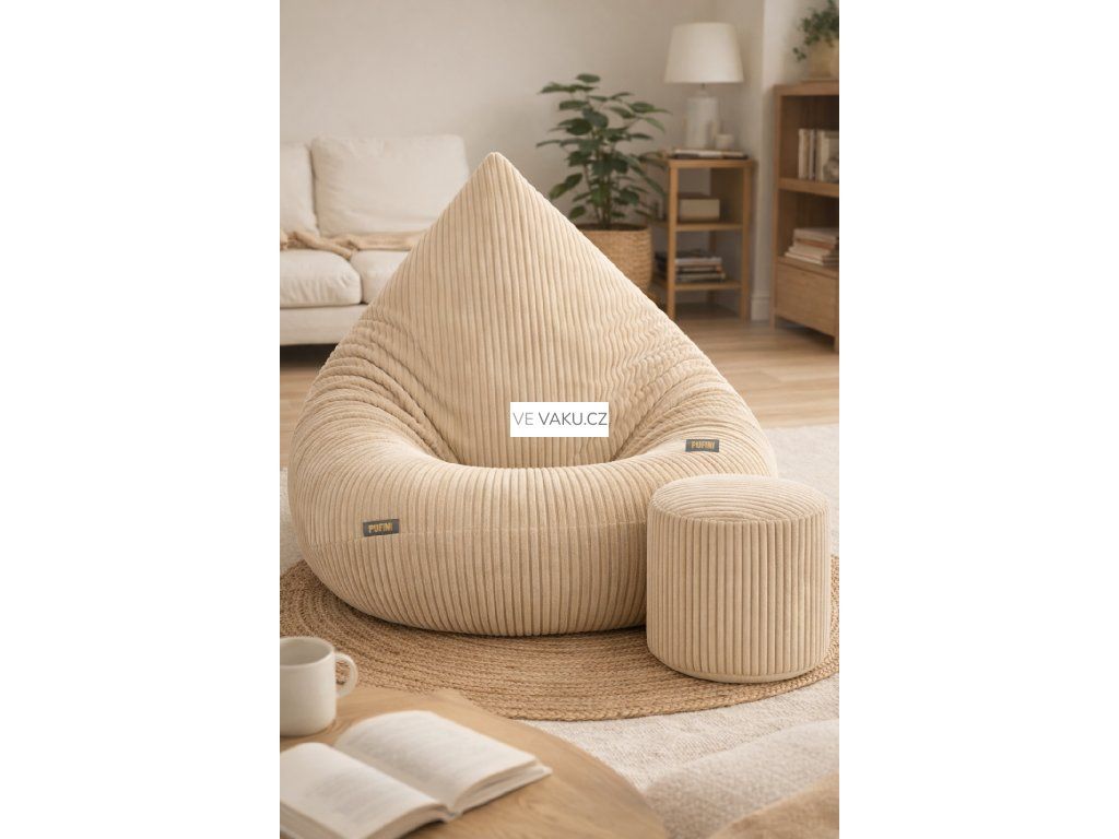 Mega pohodlný manšestrový sedací vak s podnožkou ZDARMA. Vyrobený z tkaniny PREMIUM, ručně šitý s důrazem na kvalitu. Stylový, měkký a odolný – ideální do domu, školy i na zahradu!