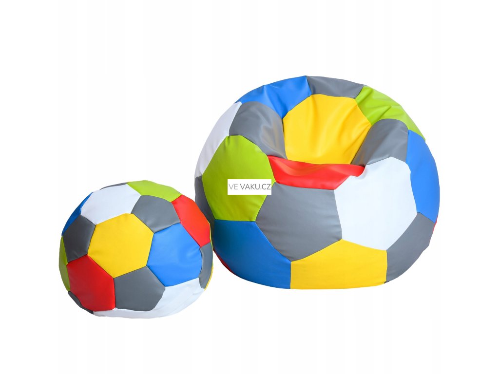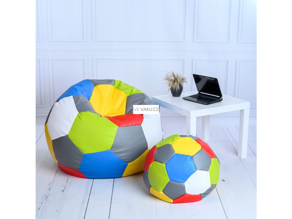 Sedací vak Fotbalový míč XXXXL 100 cm + podnožník – eko-kůže vícebarevný