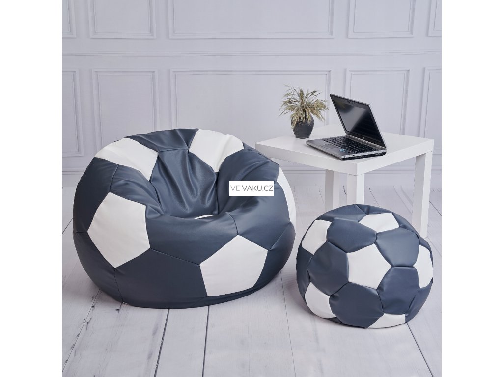 Stylový a pohodlný sedací vak ve tvaru fotbalového míče o průměru 100 cm je ideální doplněk do dětského pokoje, herny, obýváku i na terasu. Vyroben z měkké a odolné eko kůže, s výplní z granulovaného polystyrenu, která se perfektně přizpůsobí tělu. Vak je doplněn podnožníkem ve stejném designu, který zvyšuje komfort při sezení.