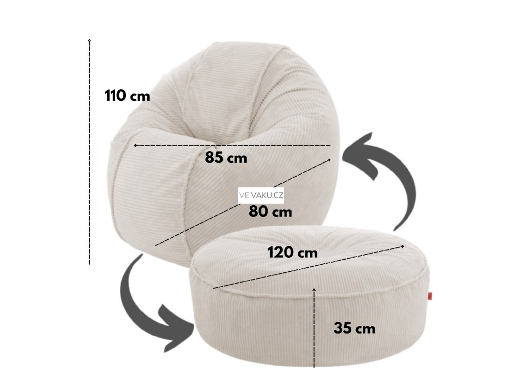Sedací vak OVAL 2v1 – plyšový manšestr • 120 cm • béžový je moderní a mimořádně pohodlný designový kus nábytku, který si zamilujete hned při prvním usednutí. Díky velkému rozměru, ergonomickému tvaru a luxusní manšestrové tkanině vytváří útulné místo k relaxaci přesně tam, kde ho potřebujete.