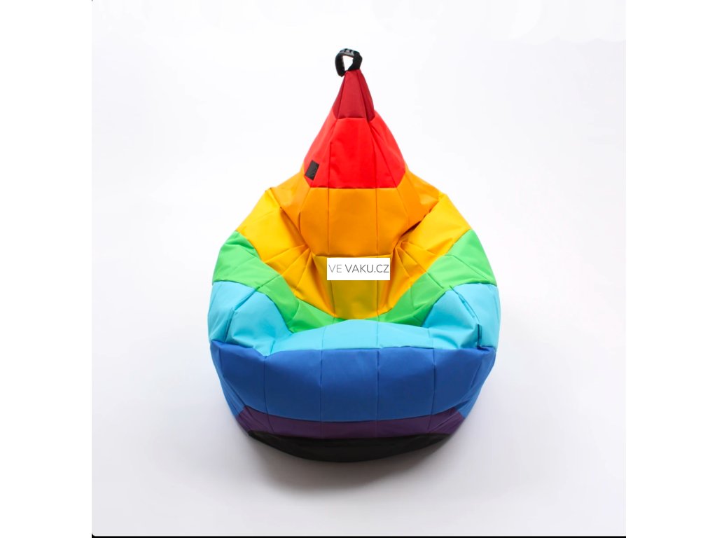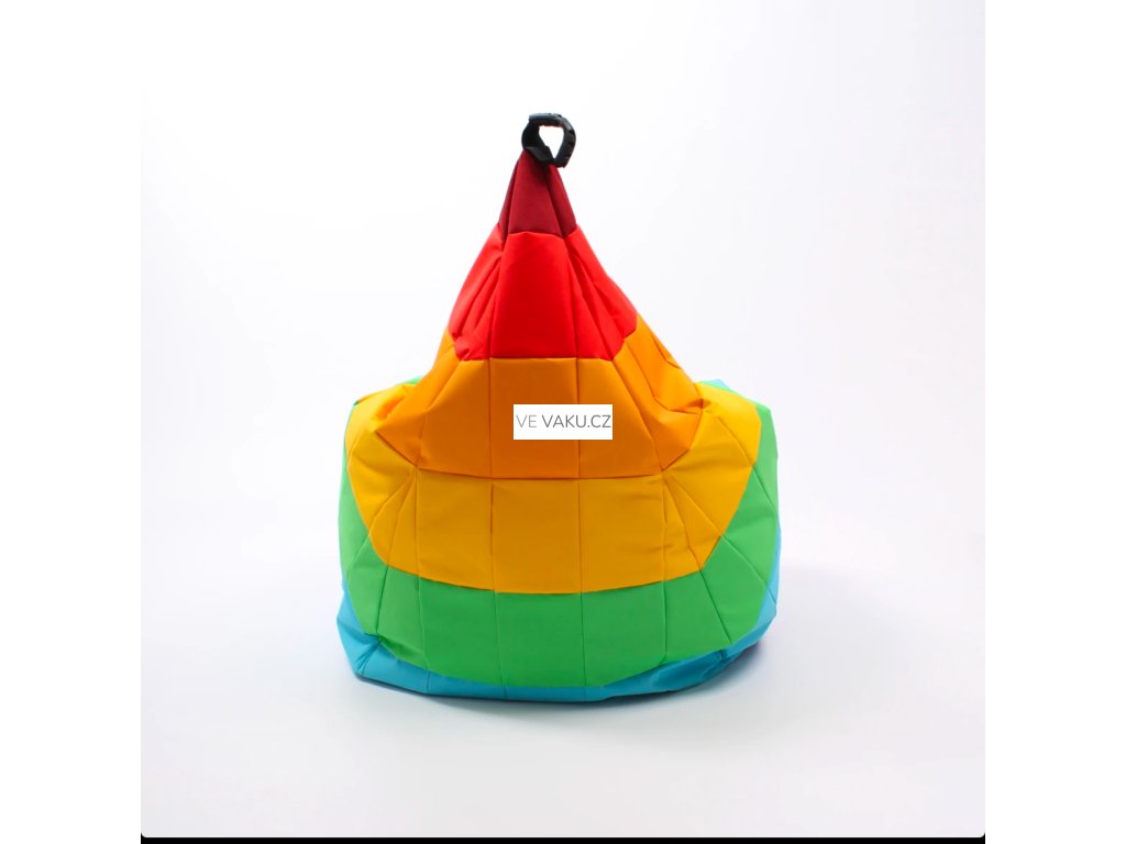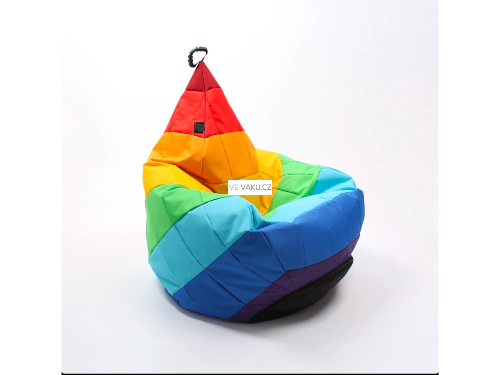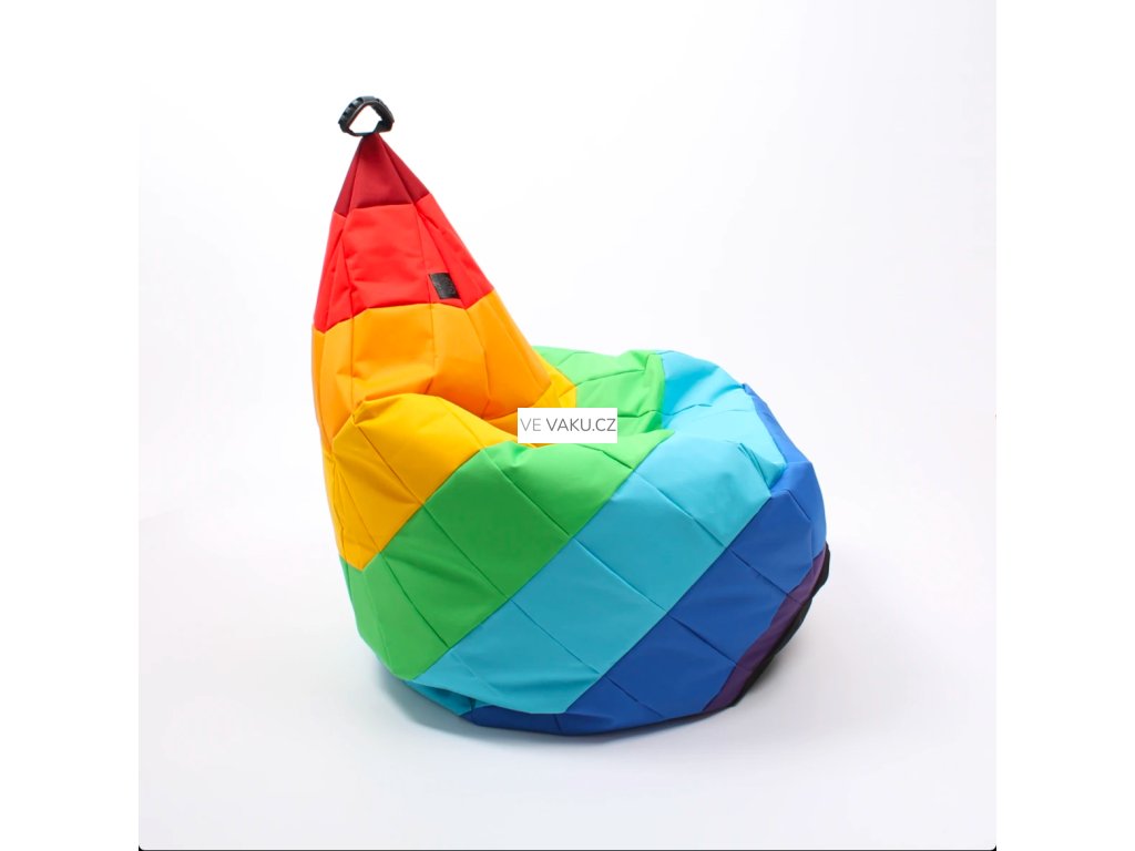 Sedací vak Patchwork Duha je stylový puf vyrobený v duchu ZERO WASTE – z 103 barevných kusů látky. Má tvar křesla, který zajišťuje maximální pohodlí a relaxaci.