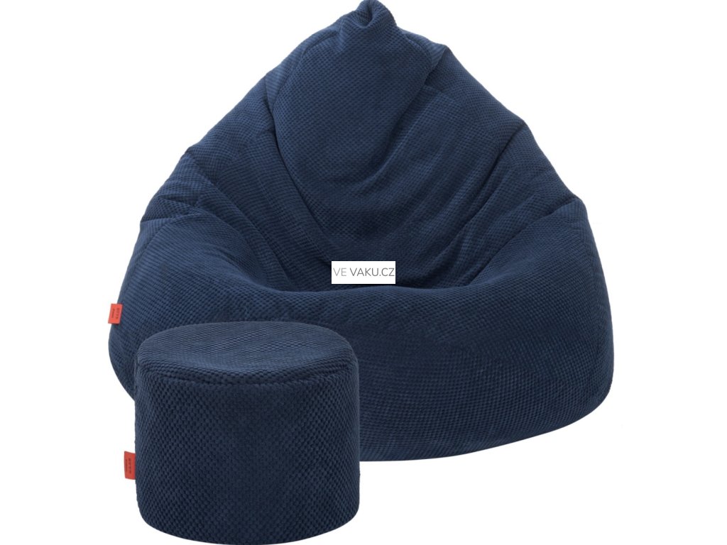 Sedací vak z podnožníkem pro děti i dospělé tmavé modrý střední