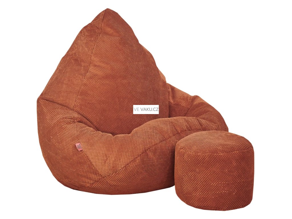 Designový sedací vak z podnožníkem pro děti i dospělé cihlový