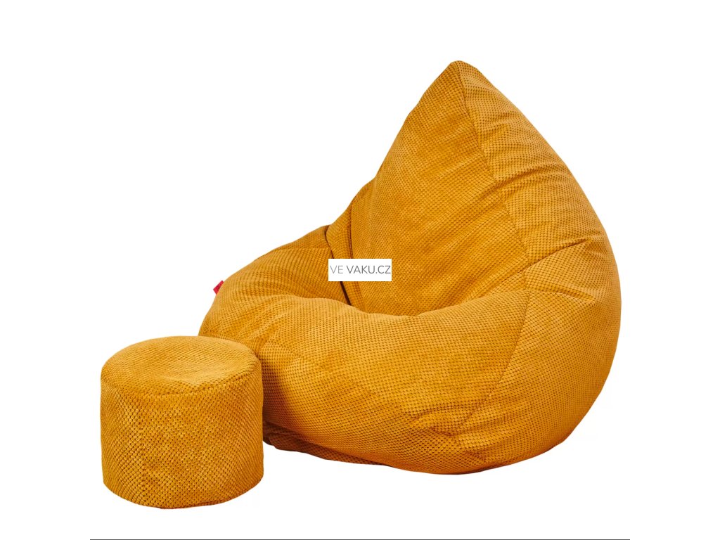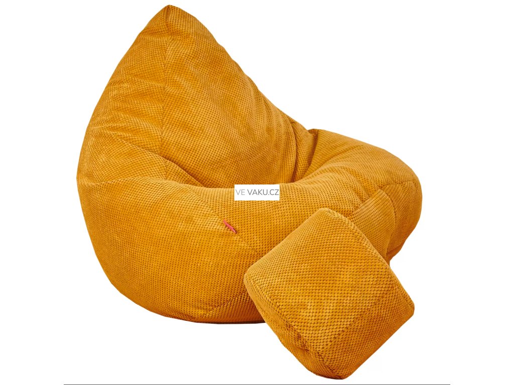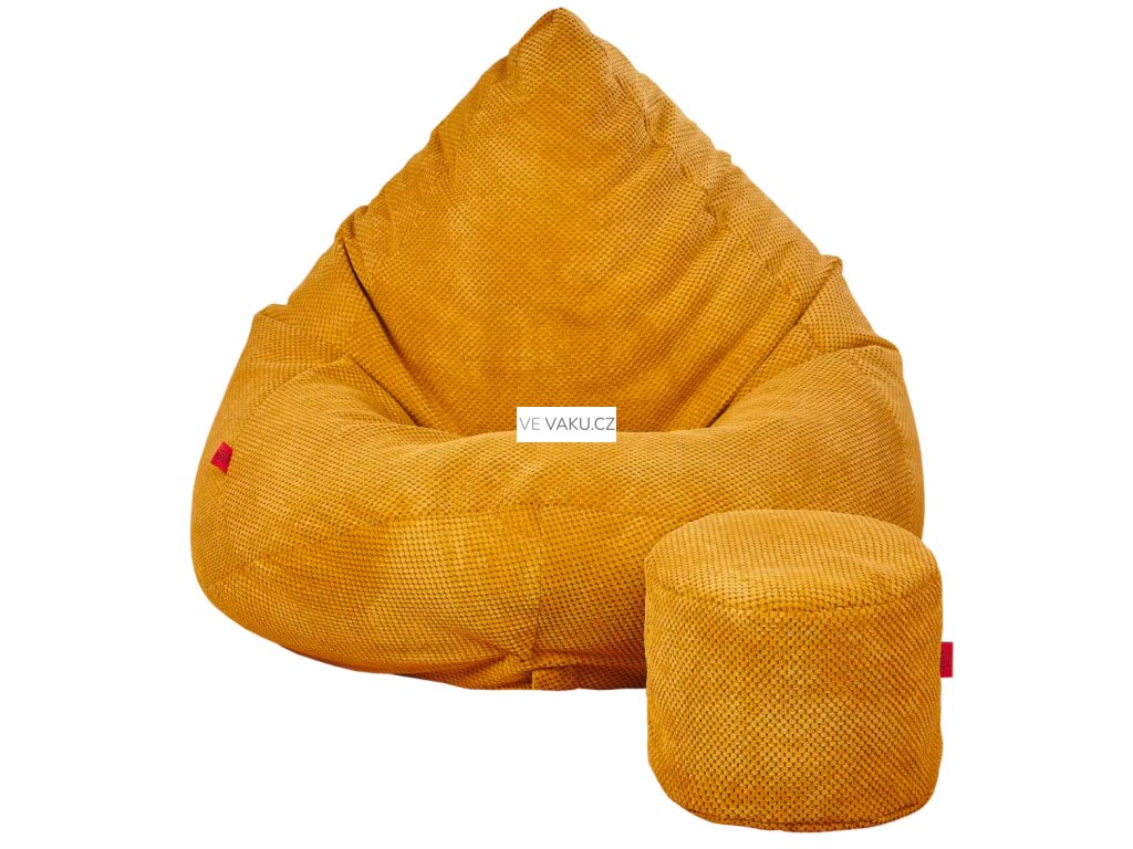 Designový sedací vak z podnožníkem pro děti i dospělé žlutý