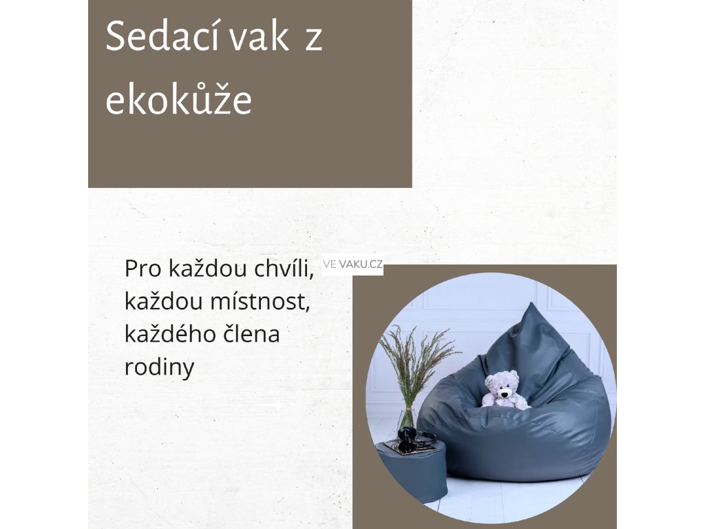 Naše vaky jsou vyrobeny z nejkvalitnější polské ekologické kůže. Díky tomu jsou velmi jemné a příjemné na dotek. Naši dodavatelé navíc dbali na vysokou odolnost materiálu vůči nečistotám a poškození. Výplň taburetu tvoří granulovaný polystyren, díky kterému se jeho tvar tak dobře přizpůsobí tělu uživatele