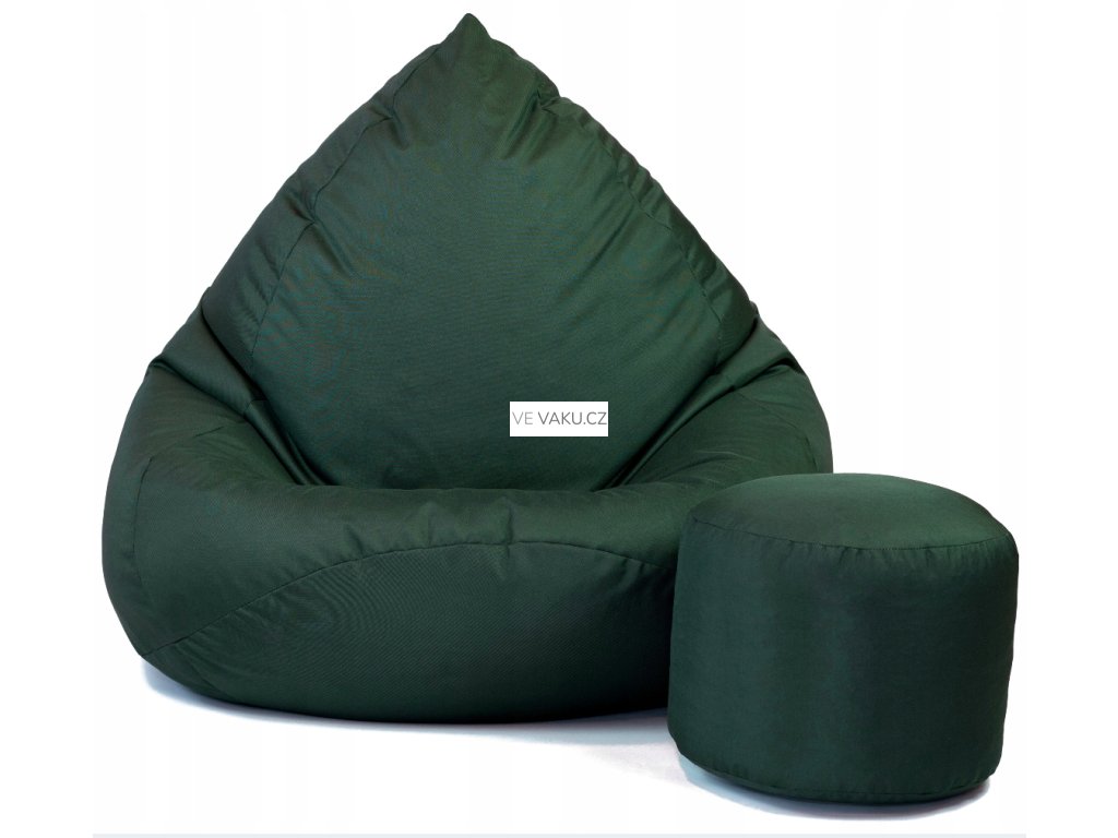 Sedací vak XXXL s podnožníkem zelený do domu a na zahradu